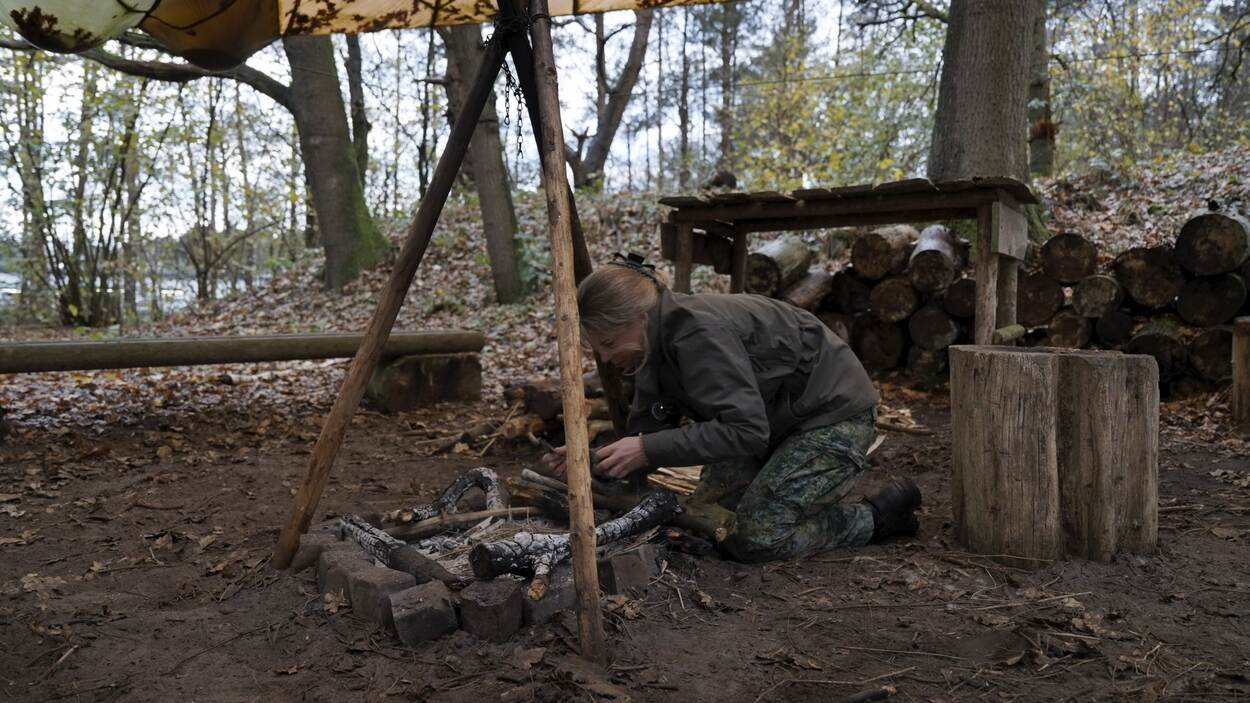 Marie-José is bezig met het maken van een vuur.