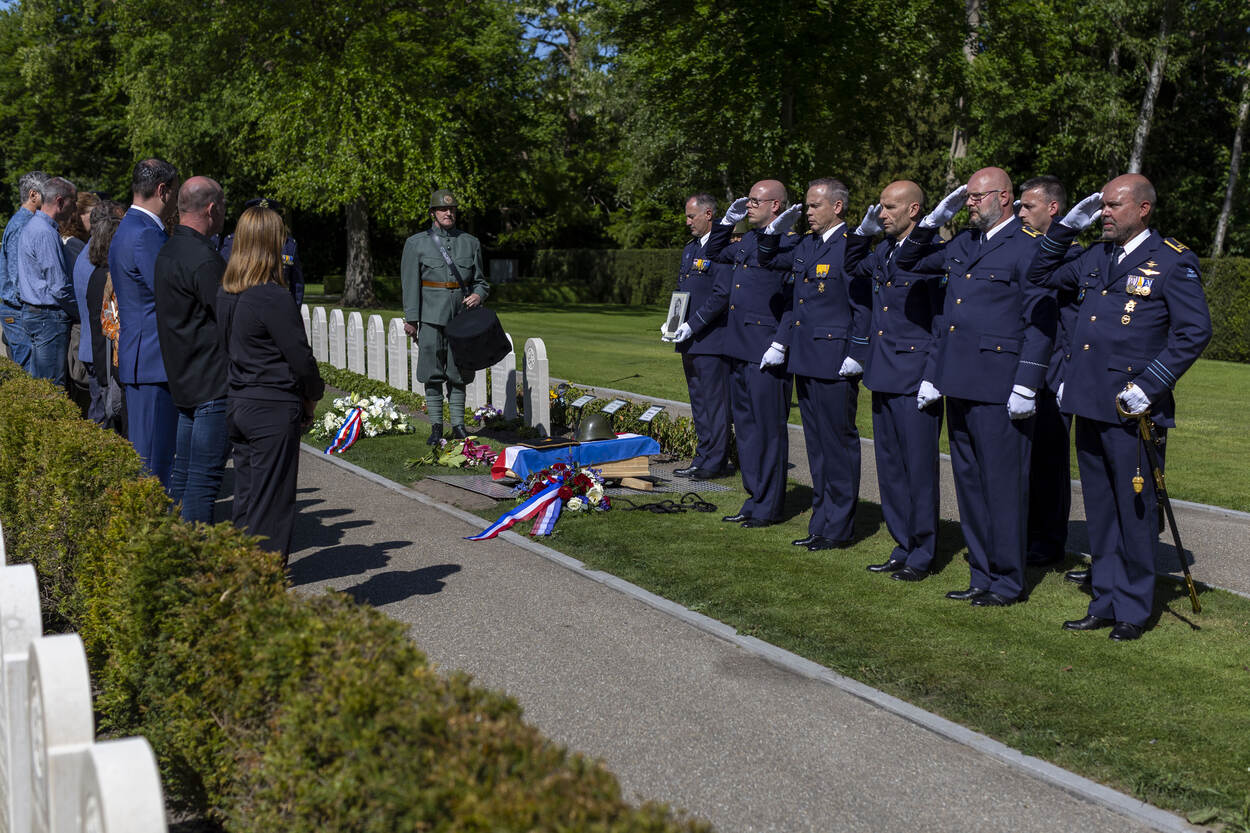 Korporaal radioboordtelegrafist 1e Luchtvaartregiment Leendert Johannes Beerschooten is op 15 mei met militaire eer herbegraven op Militair Ereveld Grebbeberg. Die dag is het precies 85 jaar geleden dat Nederland de overgave aan nazi-Duitsland tekende. Dat gebeurt na vijf dagen van strijd, waarbij zo’n 2.300 Nederlandse militairen omkomen. Beerschoten is op 10 mei 1940 gesneuveld op vliegveld De Kooy bij Den Helder. Op verzoek van zijn familie heeft hij nu zijn laatste rustplaats op de Grebbeberg gekregen.