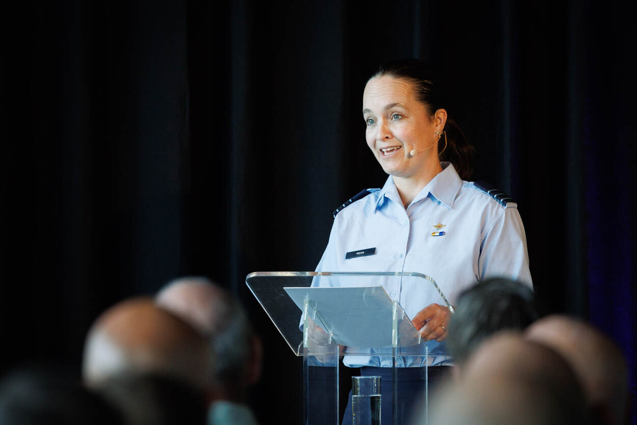 Gastvrouw van het evenement luitenant-kolonel Petra Wijnja werkt al sinds 2015 aan 'space'. Ze is momenteel Hoofd Space Warefare and Expertise bij het Defence Space Security Centre.
