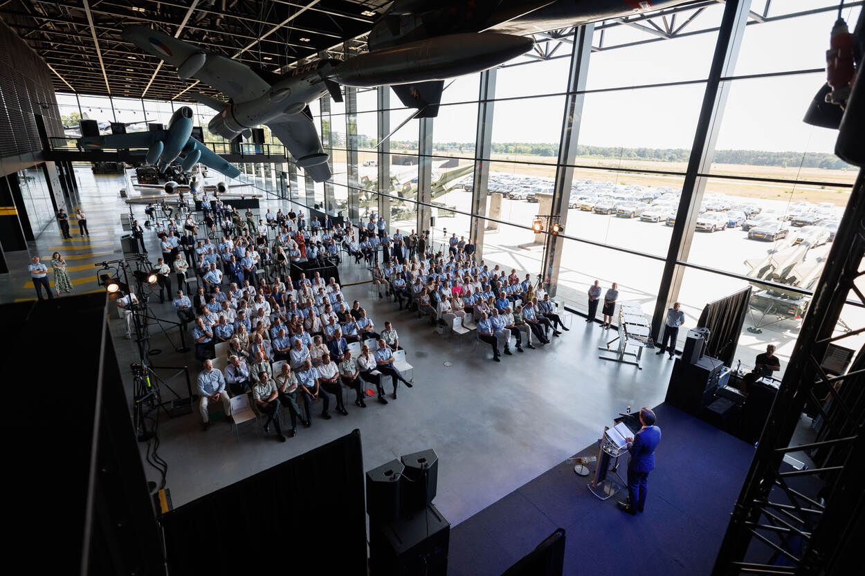 Zo’n tweehonderd genodigden verzamelen zich op deze tropische dag in het Nationaal Militair Museum, gelegen op voormalig Vliegbasis Soesterberg. De plek waar in 1913 de Luchtvaartafdeeling werd opgericht, het begin van de Nederlandse militaire luchtvaart. Ook de plek waar het eerste militaire vliegtuig, de Brik van Van Meel, begon aan de verkenning van het luchtruim. Vandaag, ruim een eeuw later, is het de plek waar het ruimtedomein officieel binnen de krijgsmacht erkend en belegd wordt binnen de Koninklijke Luchtmacht.