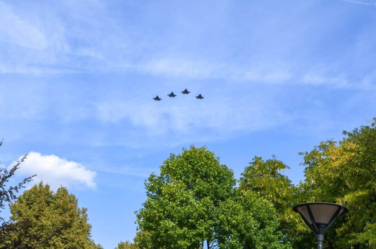 Met vier F-35’s ondersteunde de luchtmacht op zaterdag 6 september de jaarlijkse herdenking bij het Nationaal Indiëmonument in Roermond. De toestellen vlogen daarbij een missing man-formatie waarbij tijdens het overvliegen één F-35 de groep verlaat. Het gat in de formatie symboliseert de gevallen kameraden.