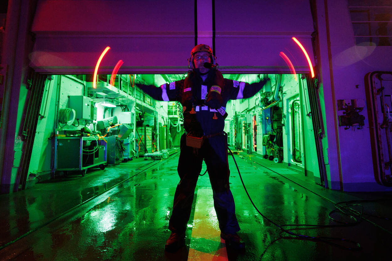 Als opstapper voelt Lubbert zich welkom aan boord: “Je maakt je bed op en noemt het thuis. Het bevalt me wel.” Toch is de boordvliegploeg op een marineschip altijd een ‘vreemde eend in de bijt’, stelt hij. Dat kan vliegdekofficier (VDO) Henk, de enige marinier aan boord, bevestigen. “Maar mij deert het niet, ik heb al zoveel gevaren.” Henk noemt vliegen ‘topsport’. “De Van Amstel is een van de kleinste platformen binnen de marine waarop je met een NH90 kunt landen en is bovendien het minst goed verlicht. In het donker en met harde wind is dat voor de vlieger extreem uitdagend. Als de heli boven het dek hangt, ziet de vlieger amper iets. Dan ben ik zijn ogen.”